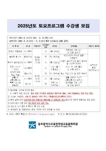 [중앙뉴스라인, 전은희기자] 광주광역시교육청학생교육문화회관은 ‘2025년도 토요프로그램’을 운영한다.