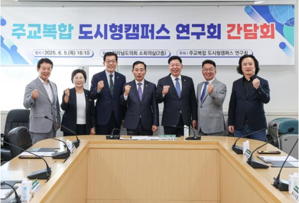 [중앙뉴스라인, 김민수기자] 전라남도의회 의원연구단체 ‘전남 주교복합 도시형캠퍼스 연구회’는 6월 5일 전라남도의회 소회의실에서 '전남형 주교복합 도시형캠퍼스 모델 개발 및 활성화 방안 연구' 정책연구용역 보고회 및 간담회를 열고 본격적인 연구 활동에 돌입했다.