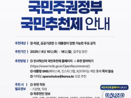 아울러 "이번 국민추천제는 인사 절차의 변화를 넘어, 국민이 국가 운영의 주체가 돼 주도권을 행사하는 의미 있는 첫걸음이 될 것"이라고 강조했다