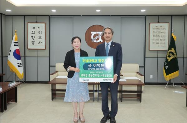 류혜경 전남대 총동창회장, 발전기금 2억 원 기부