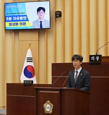 [중앙뉴스라인, 김효현기자] 광주 서구의회 임성화 의원이(광천동, 유덕동, 치평동, 상무1동, 동천동) 16일 제331회 제1차 정례회 제1차 본회의에서 ‘5분 자유발언’을 통해 △덕흥동 파크골프장 안전 대책 및 확대 조성 △광천동 시민아파트의 보전과 적극적 활용 △ 시내버스정류장 시설물 점검 및 보완 등 3가지 주요 사안에 대해 제언했다.