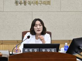 한편, 이날 한 위원장은 주민참여예산제도 사업 선정의 편중 문제에 있어, “주민참여예산 전체 제안사업 123건 중 39건만이 반영됐고 그 중 87%가 건설과와 공원녹지과에 집중됐다”며 “정형화된 사업 위주의 제안 채택에서 벗어나, 앞으로는 창의적이고 실험적인 제안도 채택될 수 있도록 선정 방식을 개선해 달라”고 당부했다.