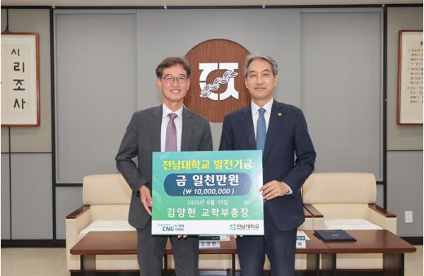 [중앙뉴스라인, 김민수기자] 전남대학교 김양현 교학부총장(철학과 교수)이 인문대학의 교육환경 개선을 위해 발전기금 1,000만 원을 기부했다. 이번 기부로 김 부총장의 누적 기부액은 총 3,500만 원에 이른다.