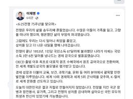 이 대통령은 마지막으로 "대한민국의 자유와 평화를 지키고자 피와 땀을 흘린 모든 분께 다시 한번 깊은 존경과 감사의 마음을 전한다"며 글을 맺었다.