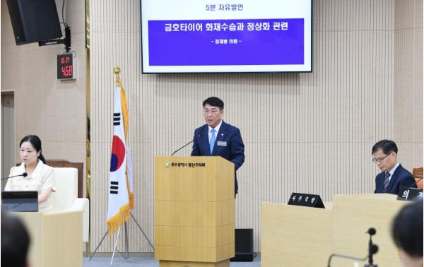 끝으로 “광산구는 금호타이어 화재 이외에도 위니아전자 파산 등으로 경기 침체 및 고용 위기 상황에 처해있다”며 “정부가 광산구를 고용위기·특별재난지역으로 지정해야한다”고 강력히 촉구하며 5분 자유발언을 마쳤다.