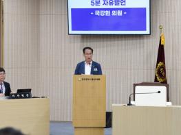 [중앙뉴스라인, 김효현기자] 국강현 광산구의원(진보당, 송정1·2동·도산동·어룡동·동곡동·평동·삼도동·본량동)이 27일 제297회 광산구의회 정례회 제4차 본회의 5분 자유발언을 통해 광산구시설관리공단의 초단기 노동자 처우를 개선하고 대화를 통한 퇴직금 산정 문제 해결을 촉구했다.