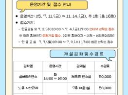 단, 비문해 성인을 위한 기초문해교육 과정인 한글교실은 7월 7일 오전 9시부터 방문 접수만 받으며, 수강료는 없다.