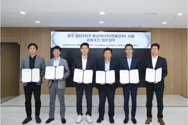 [중앙뉴스라인, 양병남기자] 광주도시공사는 첨단3지구의 에너지 자립형 산업단지 조성을 위해 탑솔라㈜, KB증권㈜, ㈜그린웰건설, 두산퓨얼셀㈜, 수완에너지㈜, ㈜해양에너지와 함께 ‘분산에너지 사업 공동추진을 위한 업무협약’을 체결했다고 2일 밝혔다.