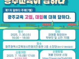 참여 대상은 광주교육에 관심있는 학부모, 시민 등 선착순 70명이다. 참여 신청은 오는 15일 오후 5시까지 온라인으로 하면 된다.