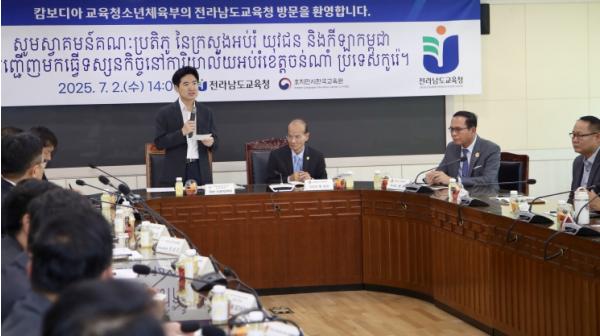 [중앙뉴스라인, 김민수기자] 캄보디아 교육청소년체육부 관계자와 한국어 채택교 교장단이 전남을 방문해 전라남도교육청의 교육정책을 공유하고, 두 나라 간 교육협력 강화 방안을 논의하는 자리를 가졌다.