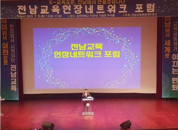 [중앙뉴스라인, 김민수기자] 전라남도의회 김정희 교육위원장은 2025년 7월 5일 순천대학교 70주년 기념관 우석홀에서 열린 ‘전남교육 현장네트워크 포럼’에 참석해, 전남교육의 미래와 혁신을 위한 강한 의지를 밝혔다.