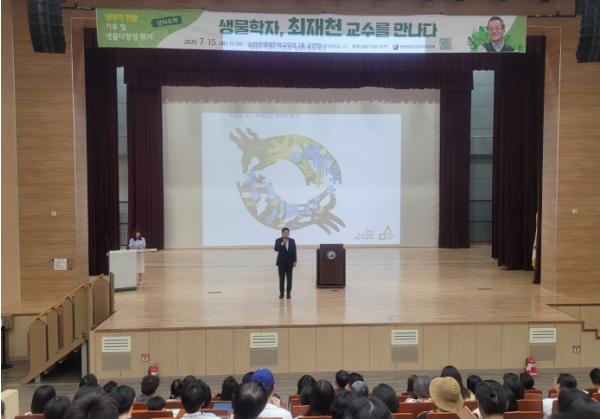 최 교수는 강연에서 기후변화로 인한 환경의 급격한 변화와 생물다양성 상실의 심각성을 강조하며, “지속가능한 미래를 위해서는 인간 중심의 사고에서 벗어나 자연과의 공존을 실현해야 한다”고 역설했다. 또 교육이 생태적 전환의 열쇠이며, 학생들에게 생태 감수성과 실천 역량을 길러주는 것이 중요하다고 강조했다.