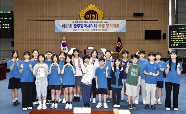[중앙뉴스라인, 김효현기자] 광주광역시의회는 7월 21일 오전 10시 시의회 본회의장에서 풍영초등학교 학생들을 대상으로 ‘제87회 광주광역시의회 학생 모의의회’를 개최했다.