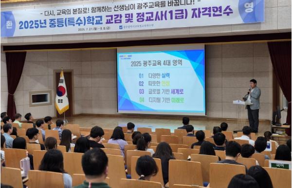[중앙뉴스라인, 전은희기자] 광주광역시교육청교육연수원은 21일부터 오는 8월 14일까지 본원 다목적실 등 8곳에서 ‘2025년 하계 정교사(1급) 및 교감 자격연수’ 과정을 운영한다.