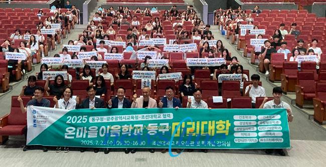[중앙뉴스라인 = 전은희 기자] 광주광역시교육청 시민협치진흥원 광주 동구청 그리고 조선대학교가 손을 맞잡고 고등학생들을 위한 진로 체험 프로그램 ‘2025 온마을이음학교 동구 미리대학’을 지난 23일 조선대학교 캠퍼스에서 성황리에 운영했다.