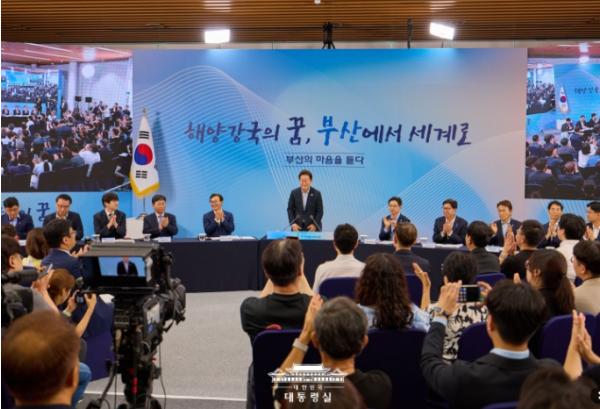 이 대통령의 타운홀미팅은 지난달 25일 광주, 지난 4일 대전에 이어 세 번째다. 이날 타운홀미팅에는 전재수 해수부 장관, 김경수 지방시대위원장, 박형준 부산시장과 시민 200여 명이 참석했다.