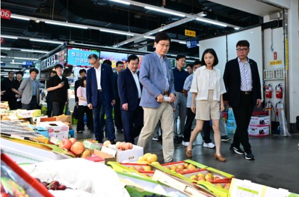 이에 최 의장은 “현장에 와 살펴보니 공사가 농축산물 수급과 가격 안정을 위해 기민하게 대응하고 있는 것 같아 마음이 놓인다.”며 “수박과 복숭아 가격이 평년 대비 50% 이상 비싸져 소비자 부담이 커지고 있고, 민생회복 쿠폰이 본격적으로 사용되기 시작하면 농축산물 가격은 더 오를 것으로 예상되는 만큼, 안정적인 수급과 가격안정에 보다 적극적으로 노력해달라”고 당부했다.