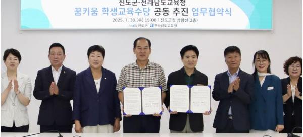 이번 협약에 따라 2026년 3월부터 진도군에 거주하는 모든 초·중·고등학생에게 월 10만 원의 전남학생교육수당이 지급될 예정이다.