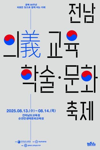 [중앙뉴스라인, 김민수기자] 광복 80주년을 맞아, 전남 학생들이 기획하고 실천하는 ‘의(義) 교육’ 축제가 열린다. 오는 8월 13~14일 순천만생태문화교육원에서 열리는 ‘전남 의(義) 교육 학술·문화 축제’는 제7기 전남학생의회가 주도하고 전남교육공동체가 함께하는 배움과 실천의 자리다.