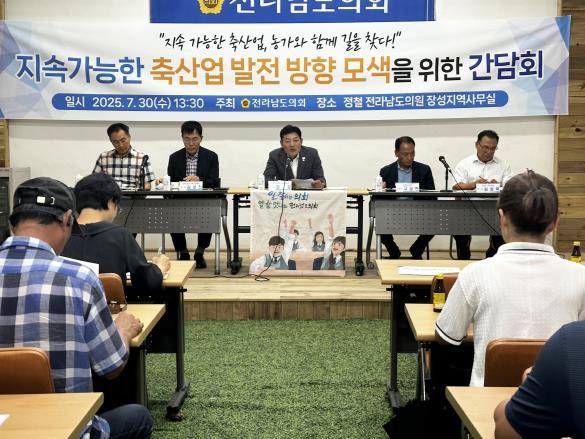 [중앙뉴스라인, 김민수기자] 전라남도의회 정철 의원(더불어민주당·장성1)이 지난 7월 30일 장성군에서 축산업 관계자들과 함께 ‘지속가능한 축산업 발전 방향 모색을 위한 간담회’를 열고 현장의 목소리를 듣는 시간을 가졌다.