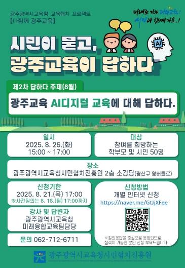광주광역시교육, AI 디지털 교육에 대해 답하다 광주시민협치진흥원, 26일 ‘시민 소통행사’