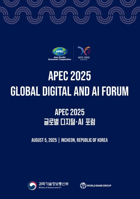 [중앙뉴스라인, 신기철기자] 과학기술정보통신부는 세계은행(World Bank)과 함께 8월 5일 인천 쉐라톤 그랜드 호텔에서 아시아태평양경제협력체(Asia Pacific Economic Cooperation) 국제 디지털· 인공 지능 토론회(글로벌 디지털·AI 포럼)를 성공적으로 개최했다.