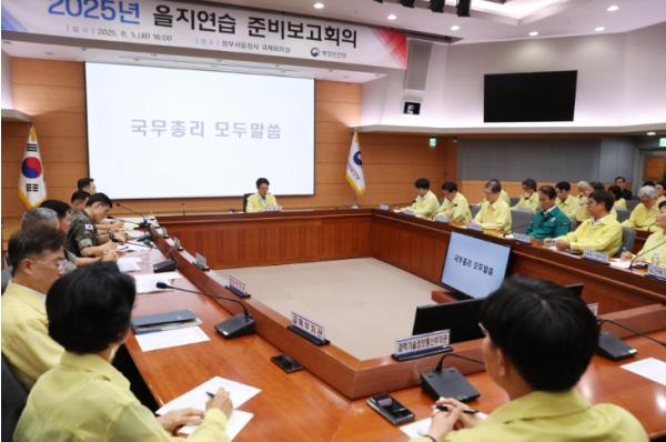 [중앙뉴스라인, 우제헌기자] 김민석 국무총리는 8월 5일 오후 정부서울청사에서 중앙행정기관장, 시·도지사, 군 지휘관 등이 참석한 가운데 2025년도 을지연습 준비보고회의를 주재했다.