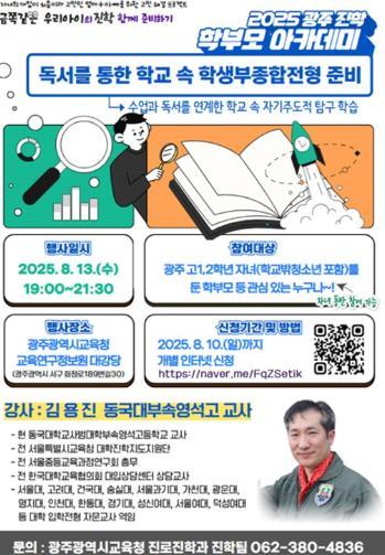[중앙뉴스라인, 전은희기자] 광주시교육청은 오는 13일 광주시교육청교육연구정보원 대강당에서 올해 4번째 ‘광주진학 학부모 아카데미’를 개최한다.