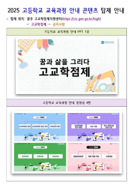 시교육청은 8일 광주 고교학점제지원센터 누리집에 고등학교 교육과정 안내 콘텐츠 ‘쉽게 알려주는 고(고교학점제)! 고(등학교 교육과정)!’을 탑재한다.