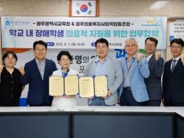 시교육청과 광주의료복지사회적협동조합은 7일 본청 상황실에서 이정선 교육감, 이혜숙 광주의료복지사회적협동조합 이사장이 참석한 가운데 ‘학교 내 장애학생 의료적 지원을 위한 업무협약’을 체결했다.