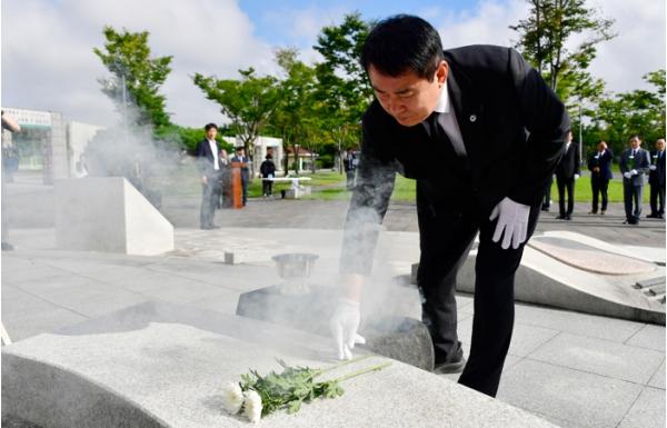 [중앙뉴스라인, 전은희기자] 이정선 광주시교육감은 15일 광복80주년을 맞아 상무시민공원 광주독립운동기념탑을 참배했다.