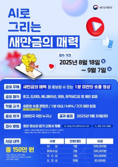 새만금개발청, 2025년 새만금 인공지능(AI) 숏폼 공모전 9월 7일까지 개최