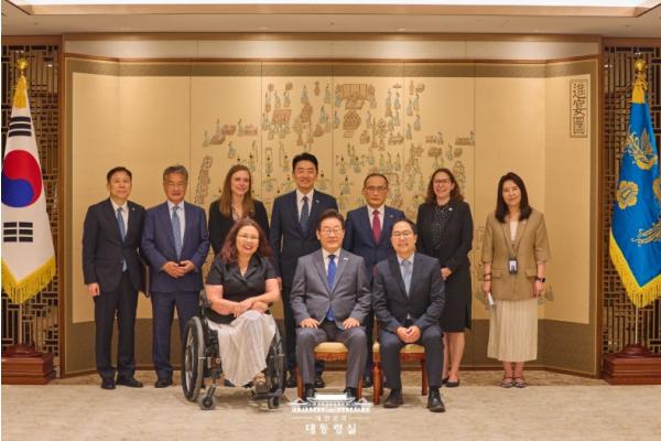 [중앙뉴스라인, 우제헌기자] 이재명 대통령은 18일 오후, 방한 중인 '태미 덕워스(Tammy Duckworth)' 상원의원 및 '앤디 킴(Andy Kim)' 상원의원을 접견하고, 한미동맹 강화, 한미 경제협력 증진, 지역 및 국제 정세 등에 대해 의견을 교환했다.