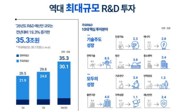 또 내년도 정부 R&D 예산안 35조 3000억 원을 편성하는 것에 대해 이 대통령은 "대한민국의 미래를 위한 과감한 결단이자, 과학기술 강국으로 도약하기 위한 정부의 분명한 의지를 담았다"고 밝혔다.