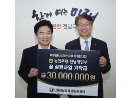 [중앙뉴스라인, 김민수기자] NH농협은행 전남본부는 25일 (재)전남교육 꿈실현재단에 ‘해외 봉사 교육 지원’을 위한 기탁금 3,000만 원을 전달했다.