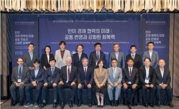 [중앙뉴스라인, 신기철기자] 외교부 경제안보외교센터는 8월 26일 서울(포시즌스 호텔)에서'한미 경제 협력의 미래 : 공동 번영과 강화된 회복력'을 주제로'제7차 경제안보 외교포럼'을 개최했다. 대외경제정책연구원(KIEP)과 공동으로 개최된 이번 포럼에는 미국 통상전문가, 주한미국외교단을 포함해 주요 업계, 협회, 관련 싱크탱크, 학계 등 경제안보 유관 전문가 80여명이 참석했다.