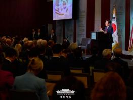 이 대통령은 한미일 협력과 관련해서도 "한미동맹의 새로운 역사에 빠질 수 없는 또 하나의 파트너가 일본"이라며 "트럼프 대통령과 함께 한미일 협력을 긴밀히 다지면서, 3국이 북한의 핵·미사일 위협에 공동대처할 것"이라고 말했다.