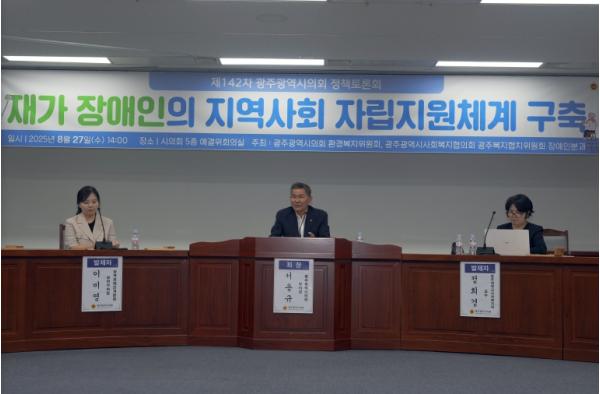 서용규 의원은 “광주는 이미 통합돌봄 및 최중증 발달장애인 24시간 돌봄체계와 같은 지원사업 등이 전국 최초의 혁신 사례를 만들어 왔다”며, “이번 토론회를 계기로 재가 장애인도 지역사회에서 당당한 시민으로 살아갈 수 있도록 법과 제도를 넘어선 실질적 지원체계를 구축해야 한다”고 밝혔다.