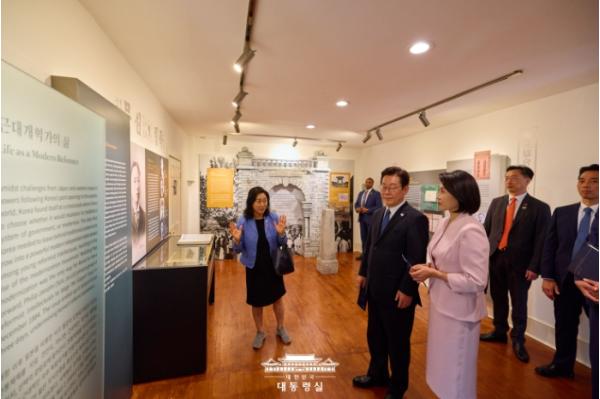 [중앙뉴스라인, 우제헌기자] 이재명 대통령과 김혜경 여사는 27일 미국 필라델피아에 있는 서재필기념관(서재필기념재단 이사장 최정수)을 방문하여 기념관 시설을 둘러보고 재단 관계자들을 격려했다.