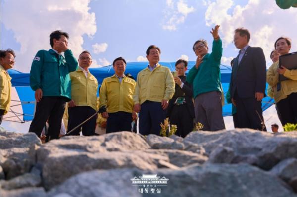 [중앙뉴스라인, 우제헌기자] 이재명 대통령은 30일 오후 가뭄으로 생활용수가 제한급수되고 있는 강원특별자치도 강릉시를 찾았다. 먼저 이대통령은 강릉지역 주요 상수원인 오봉저수지를 찾아 현장을 점검하고 주민 불편을 청취했습니다. 이대통령은 관계부처에 즉각적인 재난사태 선포를 지시하고 강릉 가뭄지역에 대한 국가소방동원령 발령도 추가로 지시했다.