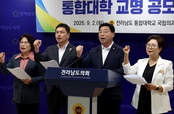 [중앙뉴스라인, 김민수기자] 전라남도 통합대학교 국립의과대학 설립 지원 특별위원회(이하 ‘의대 특위’)는 9월 2일 정부의 '의대 없는 지역에 의과대학 신설 추진' 국정과제 확정에 맞춰, 전남 의과대학 설립의 조속한 추진을 위해 국립목포대학교와 국립순천대학교의 통합대학 교명 공모를 강력히 촉구하는 성명서를 발표했다.