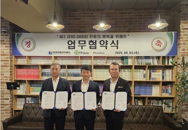 [중앙뉴스라인, 한성영기자] 2025년 9월 4일, ㈜한국에너지서비스(대표 김영직)는 컨설팅 기업 Plumline(대표 신이철), ㈜지필로스(대표 박가우)와 함께 가칭 ‘Net Zero Oasis’ 통합 신재생에너지 플랫폼의 공동 개발과 보급을 위해 9월 3일 3자 업무협약(MOU)을 체결했다.