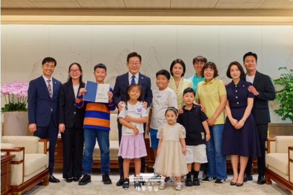 [중앙뉴스라인, 우제헌기자] 4일 오전 이재명 대통령과 김혜경 여사는 대통령에게 직접 손편지를 써서 보낸 어린이 세 명과 그 가족들을 대통령실로 초청했다.