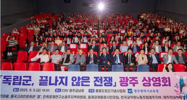 [중앙뉴스라인, 전은희기자] 광주시교육청은 광복 80주년을 맞아 지난 5일 CGV광주금남로에서 다큐멘터리 영화 ‘독립군, 끝나지 않는 전쟁’ 상영회를 개최했다.