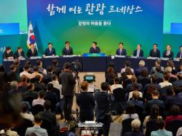 이 대통령은 "강원도는 전국 최대 관광지이자 최고의 청정지역이기도 한데, 또 한편으로 남북 대치에 따른 엄청난 희생을 치르는 지역"이라며 "지역 내 성장 발전이 상대적으로 정체가 되면서 많은 분이 수도권으로 떠난, 소위 수도권 집중 피해를 다른 지역과 똑같이 입고 있는 곳"이라고 밝혔다.