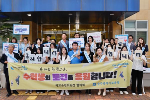 [중앙뉴스라인, 전은희기자] 광주시교육청 학교운영위원장 협의회는 15일 광주여자고등학교에서 ‘찾아가는 수능 수험생 응원 캠페인’을 실시했다.