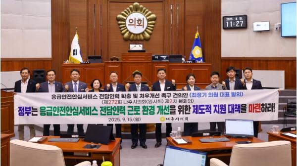 나주시의회, ‘응급안전안심서비스 전담인력 확충 및 처우개선 촉구 건의안’ 채택