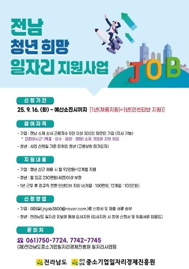 문의는 전남중소기업일자리경제진흥원 또는 전남일자리정보망에서 확인할 수 있다.