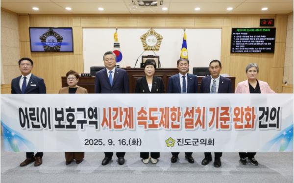 [중앙뉴스라인, 전은희기자] 진도군의회는 9월 16일에 열린 제310회 진도군의회 임시회에서 '어린이 보호구역 시간제 속도제한 설치 기준 완화 촉구 건의안'을 채택했다고 밝혔다.