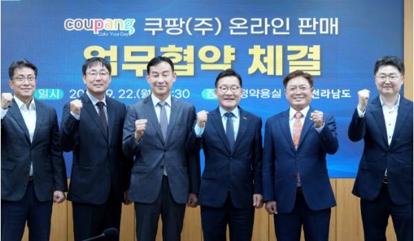 [중앙뉴스라인, 김민수기자] 전라남도는 22일 도청 정약용실에서 쿠팡㈜, 전남도상인연합회와 함께 ‘전통시장 온라인 판로 확대를 위한 업무협약’을 했다고 밝혔다.